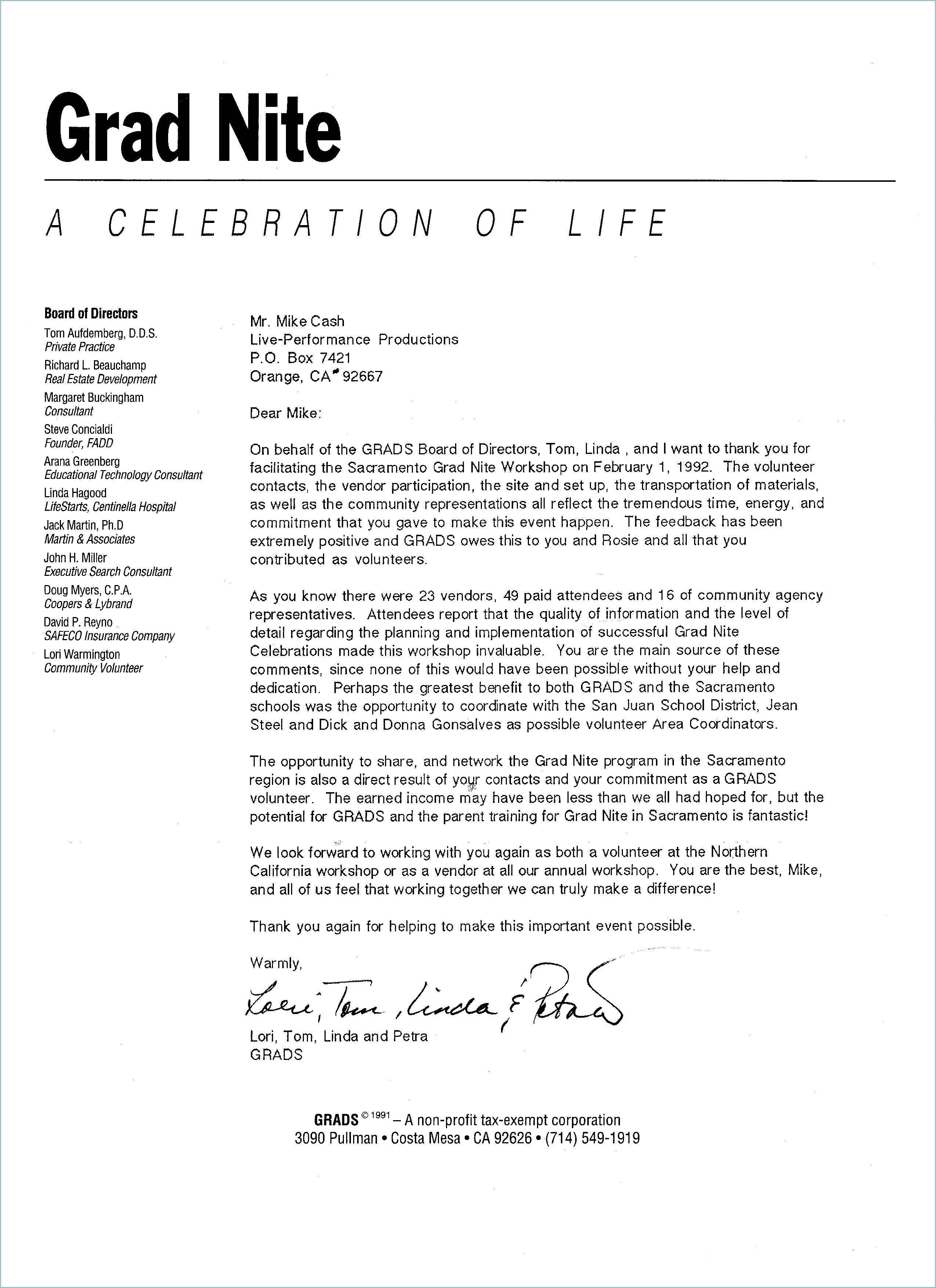 In 1991 We moved into our current location in Orange and began the expansion of our mobile studio growth. Annually, our Star In Your Own Music Video services participate in approximately 100 Sober Grad Night events throughout the Western United States. While May and June are kept extremely busy with Grad Nights, the balance of the year you will find us at events ranging from holiday parties, proms, home comings, sales meetings, conventions, school events, company picnics, community events, mitzvahs and family celebrations. Live-Performance is a founding vendor member and Mike is a former member of the board of directors of the GRADS organization, a non-profit organization which promoted and facilitated the growth of Sober Grad Night celebrations. When GRADS ceased operations after seeing the development of thousands of new Sober Grad Nights, Project Graduations and Sober Post Prom events, Mike acquired their content and materials to develop a free How-To-Do a Sober Grad Night website, GradNight.org. Advertisers support the site and the content is free to any user.